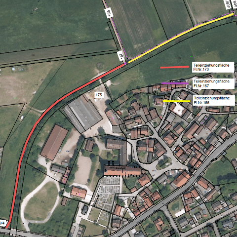166 (Teilstück gelb markiert), 167 (Teilstück lila markiert), 173 (rot markiert) jeweils Gemarkung Seligenporten
