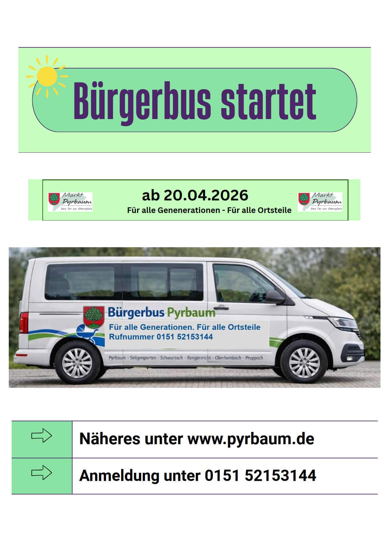Sie sind hier: Startseite » Bürgerbus Pyrbaum startet ab 20.4.2026